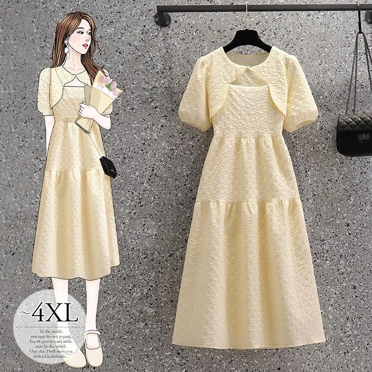 福袋セール デコルテオープン おしゃれ きれいめ レディース 半袖 春 ワンピース 服装 結婚式 パーティー 肌見せ お出かけ Cra76 体型カバー パール バルーン袖 ワンピース サイズ 4xl Icpit Org